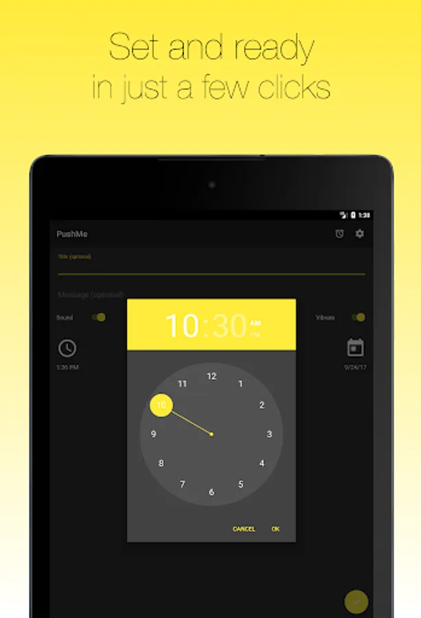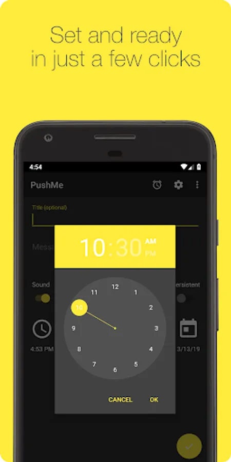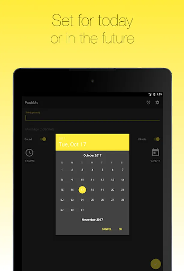2. Set a time and date (both optional - if you don’t set a time you get your notification right now)