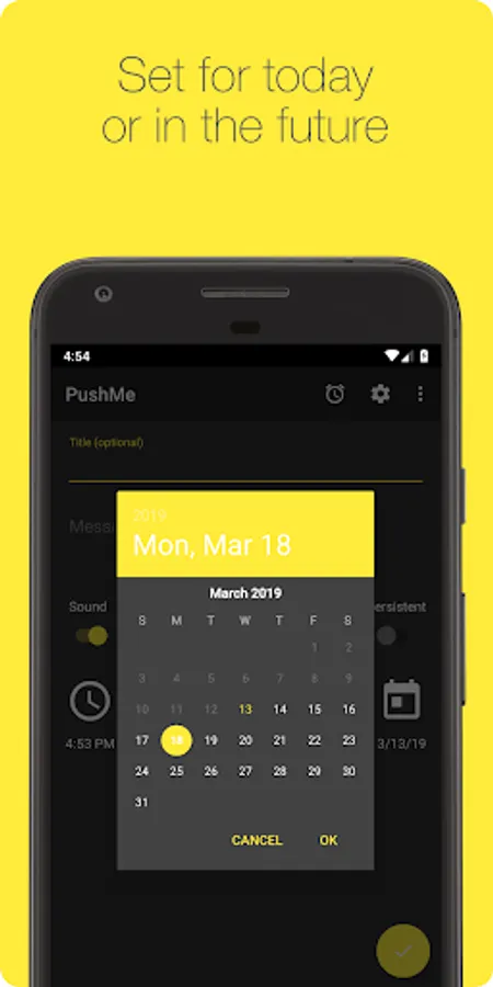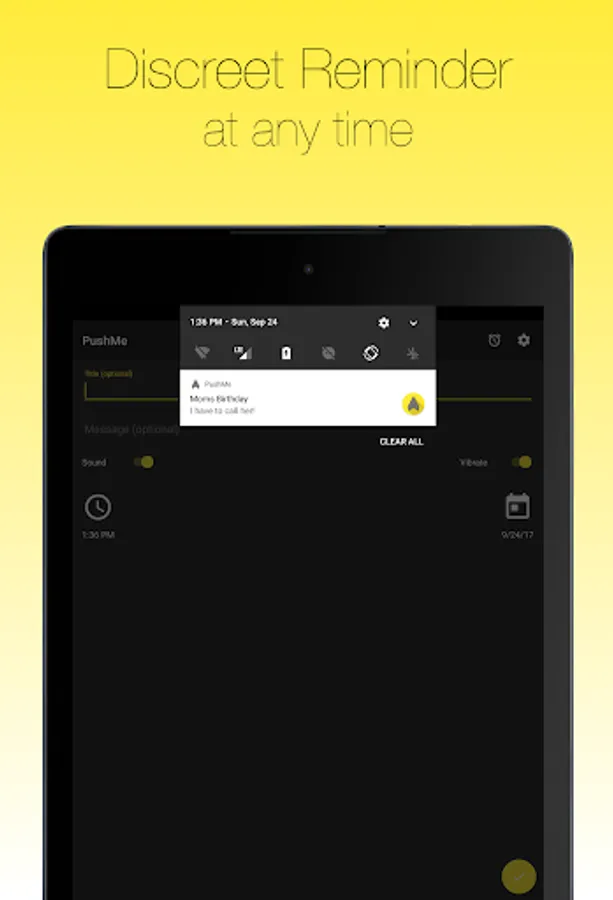PushMe lets you write notes, and sends them to you as a notification or message at a specific time or right now.