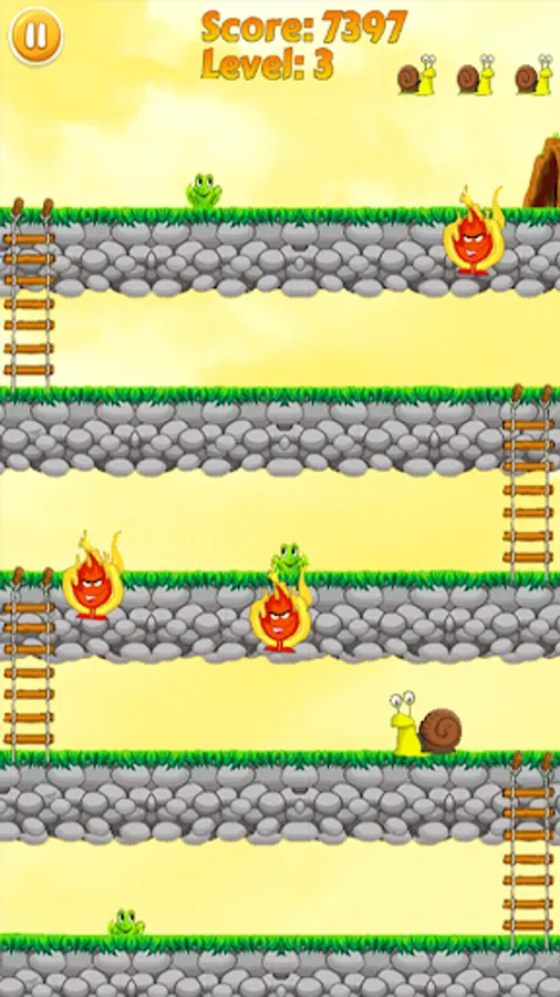 Snail Run Escape is a simple and addictive adventurous puzzle game with portrait view. Snail escape run is a simple slow pace mind relaxing game. Our goal is to help the little snail to run to its cave that is on the top floor, climb through ladders to reach the top floor and escape from all its enemies. Help our little snail to run towards its cave by just touch the screen to run the snail forward and touch again to move the snail backward so that our snail can easily escape from enemies. Snail escape run game will be a best challenging puzzle game with the best adventure levels. it has the best graphics and music.