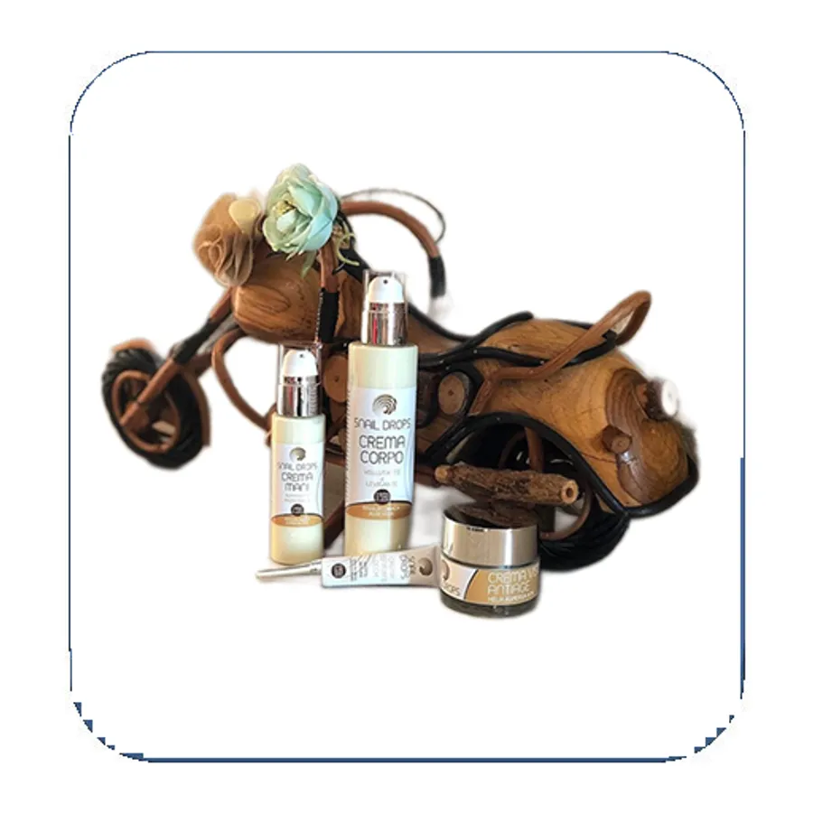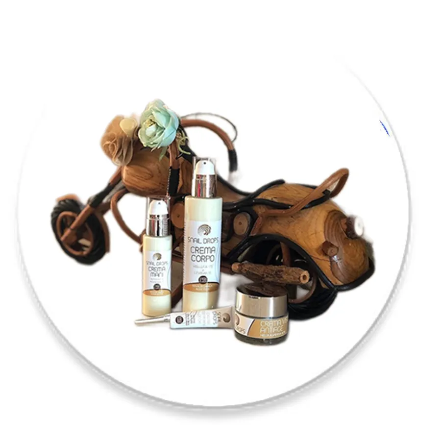 Cosmetic products based on snail slime extracted by hand in our Pietramontecorvino farm. Excellent for all skin imperfections.