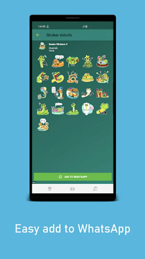 - Easy to use: Choose the Snake sticker packs you want and click the Add To WhatsApp Stickers Button.