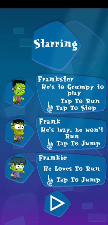 The haloween zombies trip game is where the player plays with a zombie and tries to overpass obstacles through each stage, where he must jump run and stop in order to not to get caught by the blades or the knives coming down from the top of the screen, it is highly recommended for people who like to play zombie games and it is very entertaiting for people with zombies interests