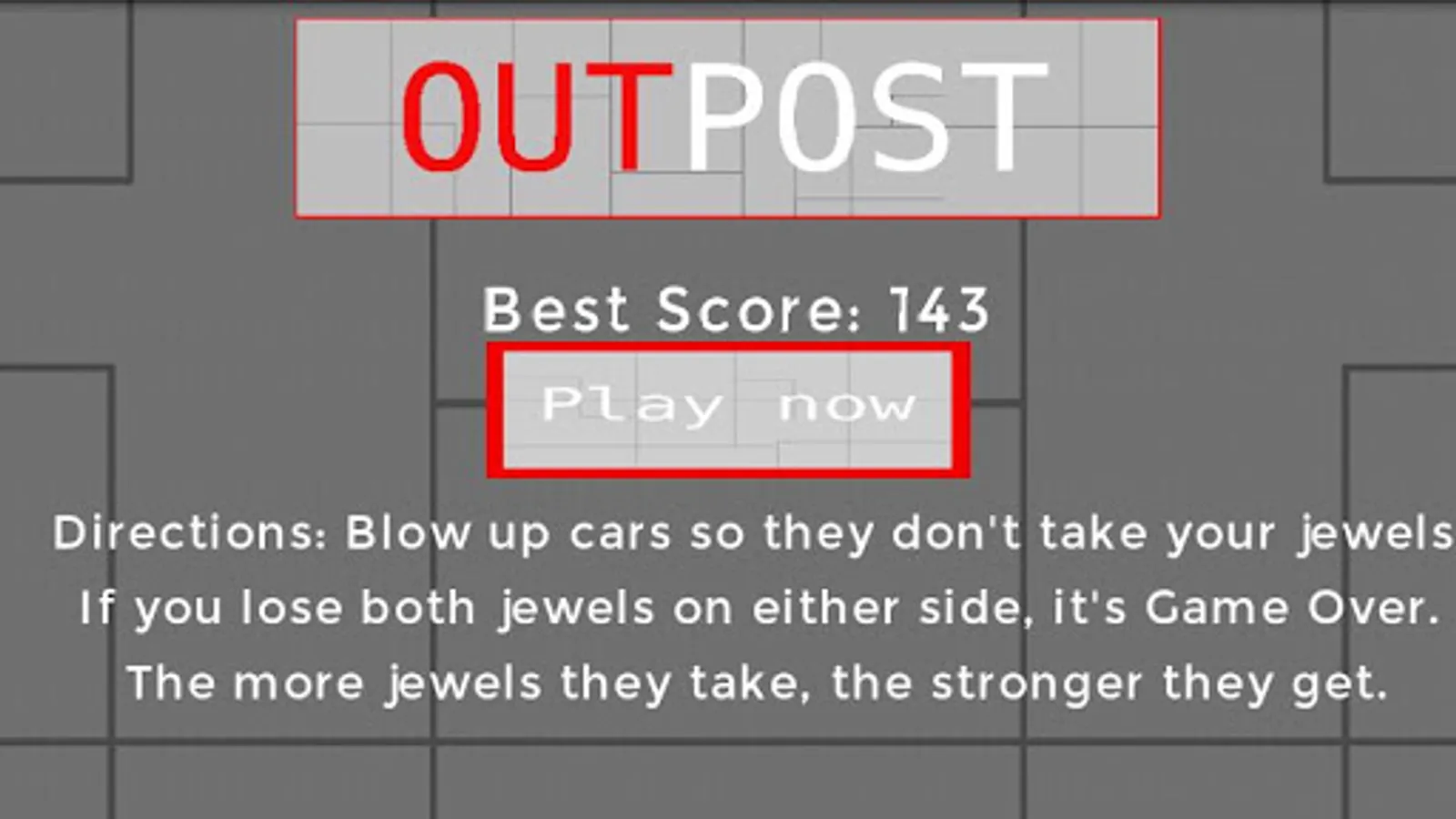 Outpost is a unique and simple shooter with an easy to learn set of rules. The goal of the game is to get the highest score possible without losing. You lose when the bad guys steal both gems on either side. You can stop them by shooting them with your explosive balls.