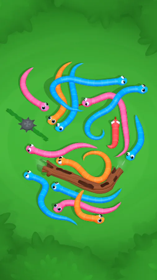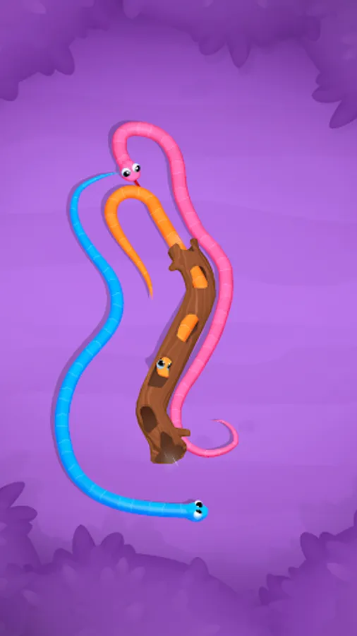 Our sorting game will tangle you up with its gripping levels! Unlike in any other sort-puzzle, deciphering the snakes' mysterious course is the main challenge here. They'll slither around, block paths, and coil themselves up in knot-tying ways. Get the snakes sorted and untie every knot by guiding them one by one. Play your moves right and keep them from bumping into each other to solve the sort-puzzle!