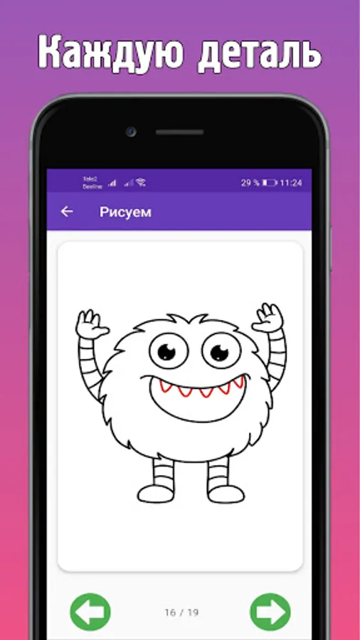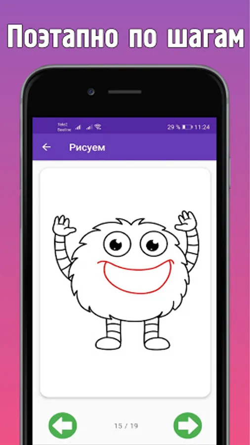 The program "How to draw step by step step by step" is small, it requires only 8 MB of free memory on your mobile phone. Sorry, the app interface is easy to navigate. The main section opens immediately after loading. Here you will understand how to draw animals or other objects. Scrolling through the pictures with arrows, you can choose the option you like the most. Well, then the time comes for the creative process. Line by line, a character appears on the screen. All you need to do is repeat the actions indicated on the smartphone display. In this case, an excellent result is guaranteed, and you will learn how to draw different pictures.