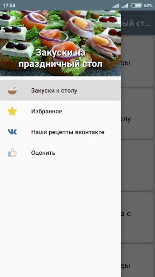 The app "Snacks on the festive table recipes with photos" will help you quickly make a snack to the festive table.