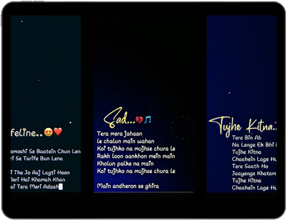 This Video Status app is basically Black screen status app which is very popular app we add lots of lyrix video status in text form with Indian Bollywood song. In that lyrical video status app contains many different categories like: