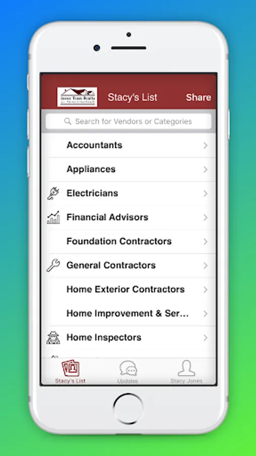 The Jones Team Realty Partners app empowers their real estate business with a simple-to-use mobile solution allowing clients to access their preferred network of vendors and stay up to date with the latest real estate updates.