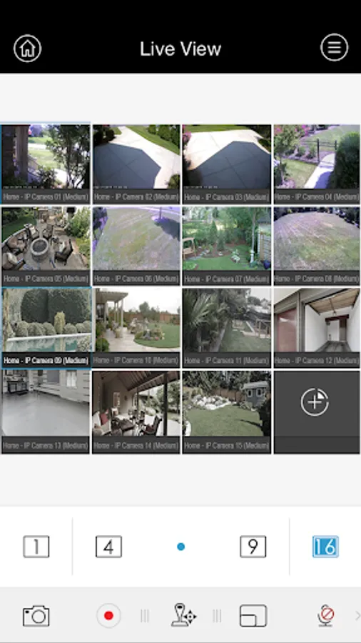 • Enjoy crystal-clear live viewing of a single or split screen (4, 9, or 16 channels simultaneously) in both portrait and landscape modes with convenient pinch to zoom