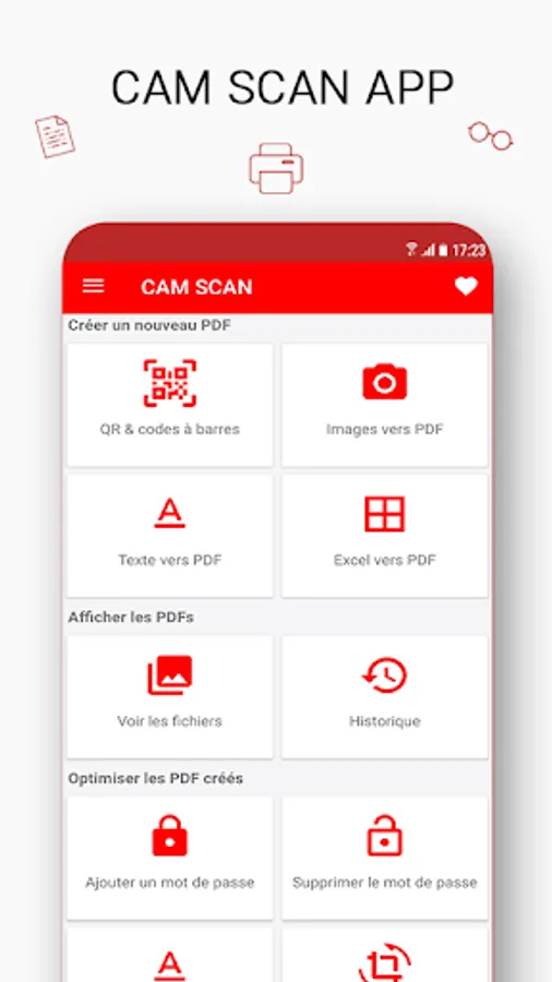- PDF Creator : Convert scanned images to the best quality PDF file.