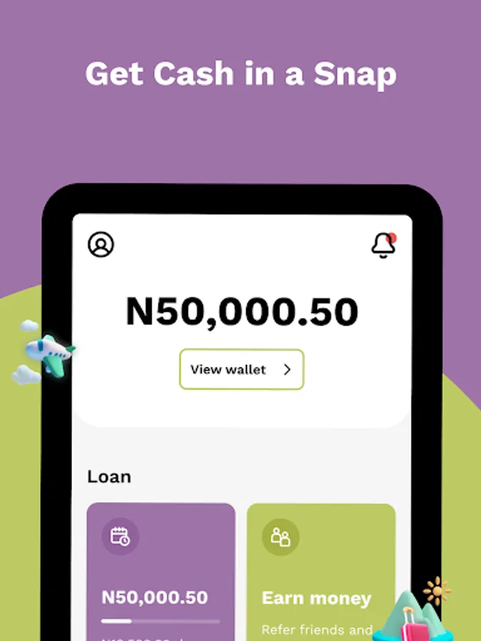 Enjoy quick loans of up to N100,000 without collateral and tedious paperwork. You also get paid when you refer someone as well as buy airtime without stress on the SnapCash mobile app!