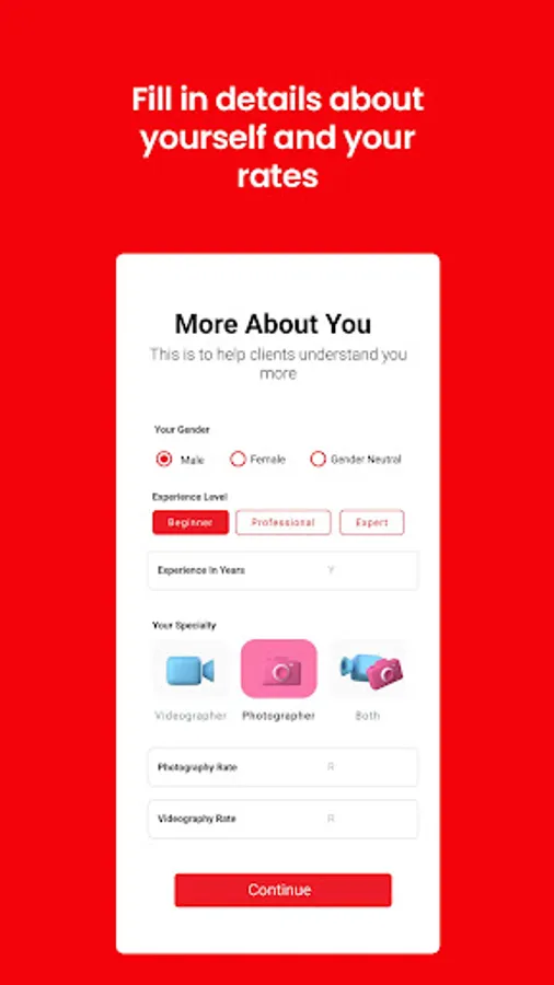 Snape is the solution to opening the market for photographers & videographers while giving consumers a wide rage service offerings for their professional photo and video needs. This product will cater any kind of immediate and pre planning needs without the panic. Near by professionals will be ready to offer their services to the client in need at any time.