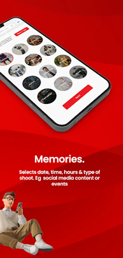 Selects date, time, hours & type of shoot. Eg social media content or events