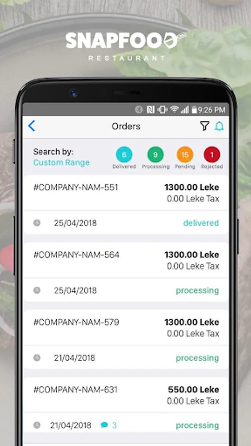 Order Management - Snapfood, aplikacioni që u vjen në ndihmë të gjithë Restoranteve, të cilët mund të menaxhojnë në kohë në kohë reale porositë e tyre në SnapFood. Funksionalitetet kryesore të aplikacionit: