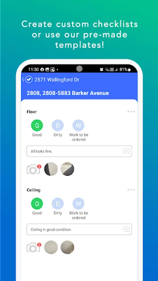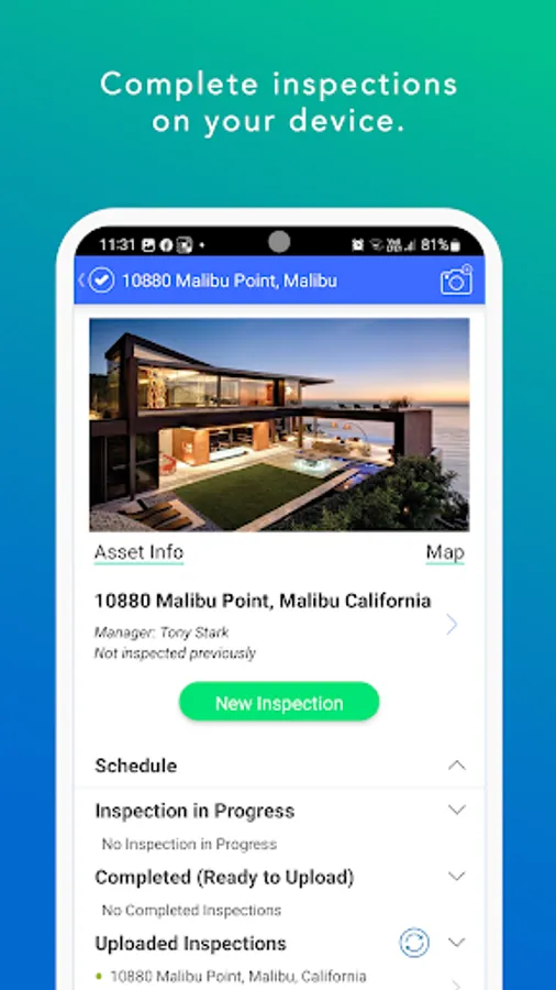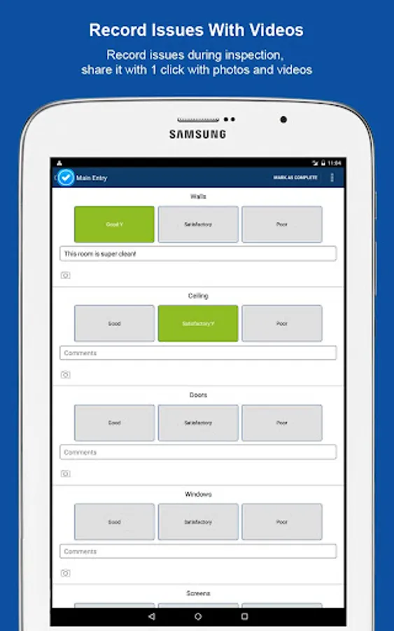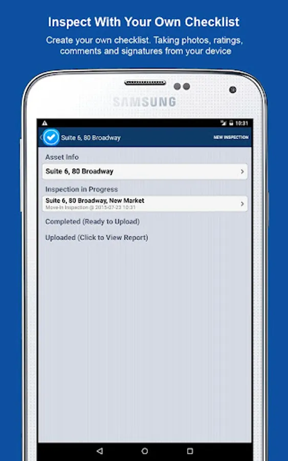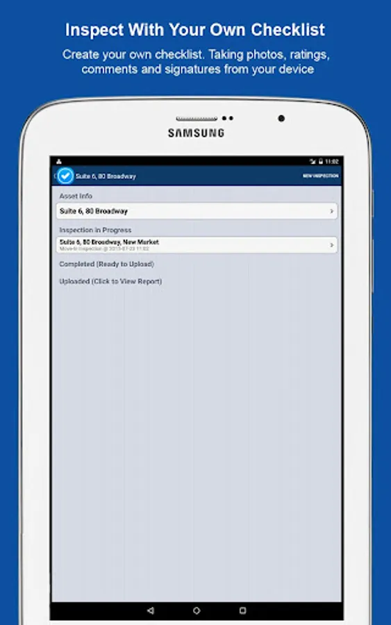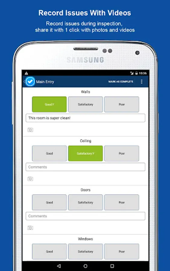 • Inspect Properties with your device using simple check-lists, comments and photos?