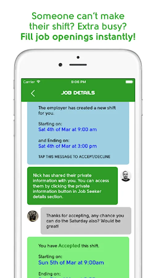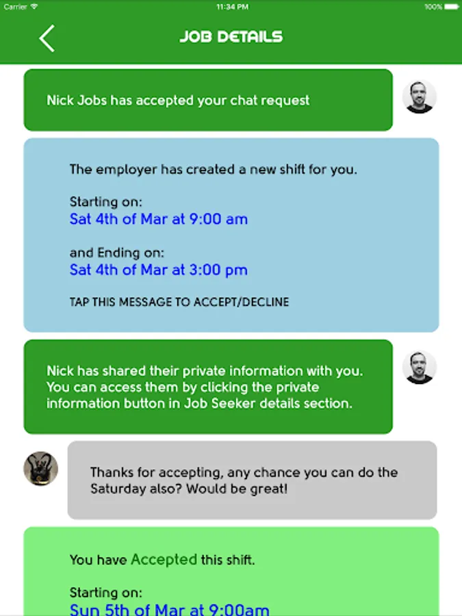Make sure you keep SnapMatch app installed and your availability up-to-date so you don't miss out on any new employer chat requests and job offers!