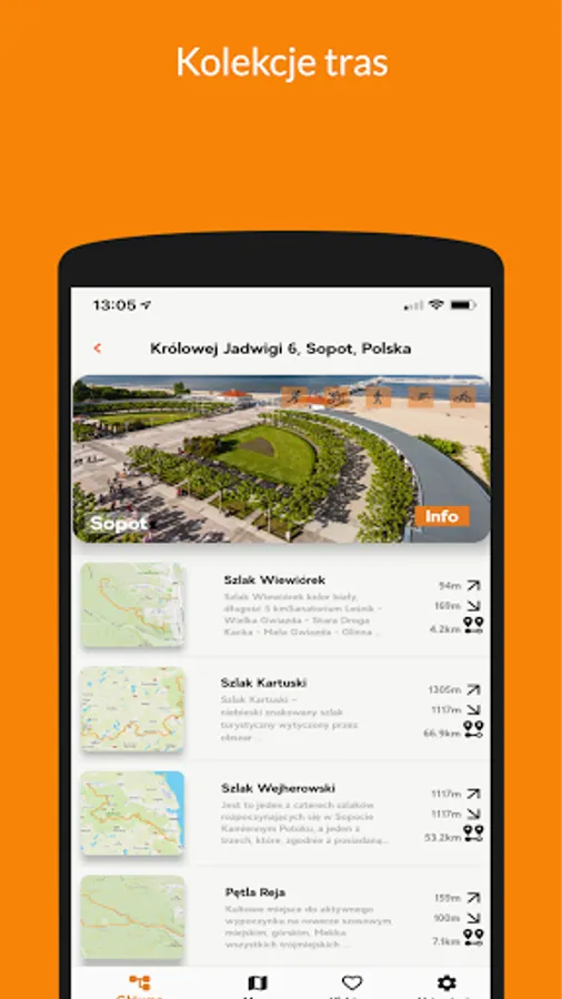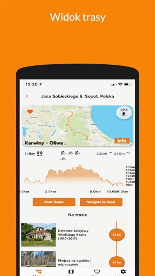 Get ready for the trip, because just one finger move "Start route" and you can go with us on the selected trip. Without unnecessary equipment, your smartphone is enough.