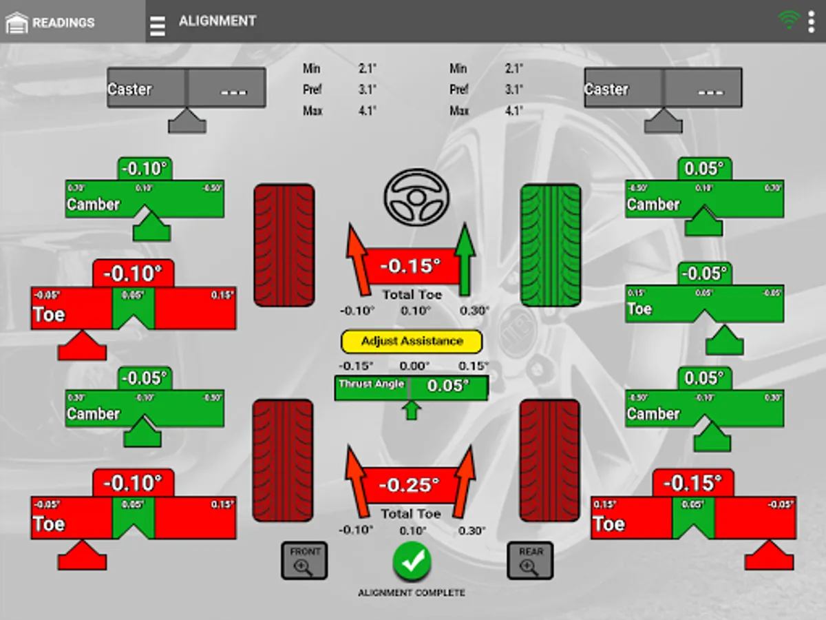 This application allows connection to supported John Bean and Hofmann wheel alignment systems. The app can be connected to the aligner as a secondary screen. Using your device as the secondary screen allows independent navigation between alignment adjustment screens and works as a remote display for the primary console provided with the aligner.