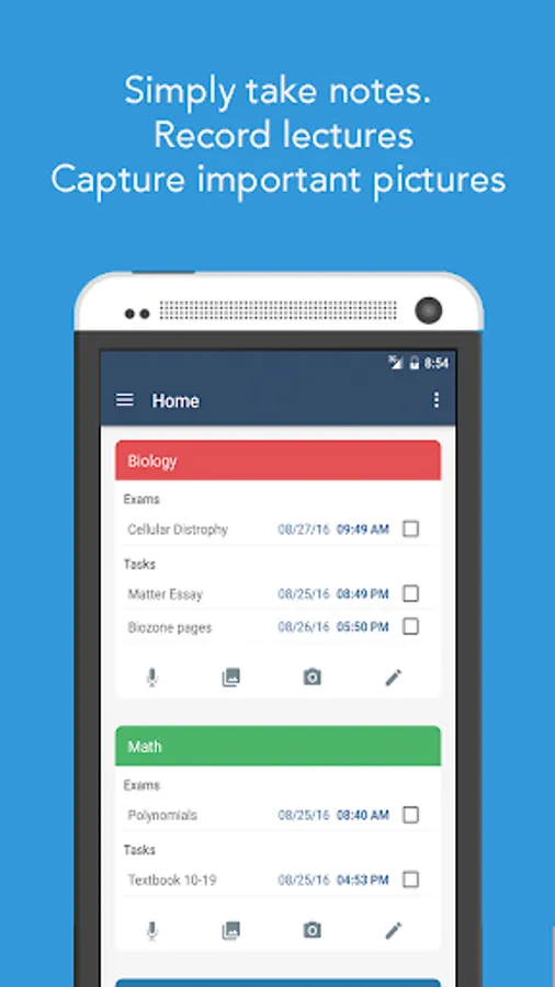 Take pictures of the white board - instead of manually typing out your tasks and exams, quickly snap a picture while in class and access it later.