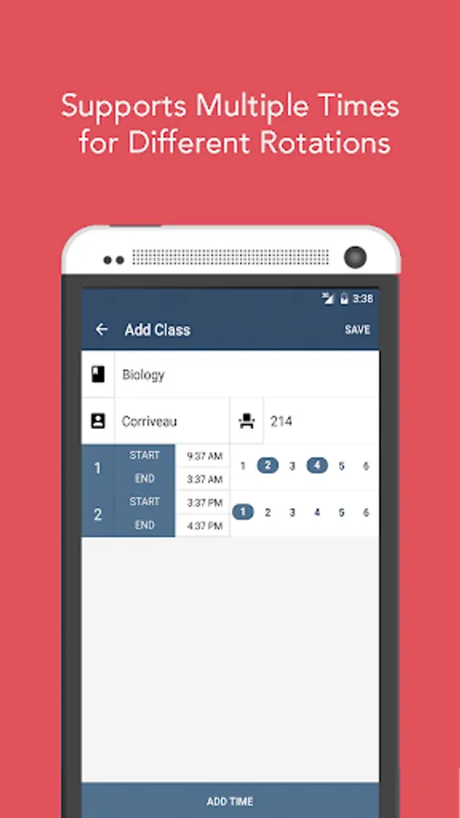 Add/view your schedule - input all your classes, including the different times/days they occur. Rotation days are supported. Forget what room your class was in? Just check MyGenda.