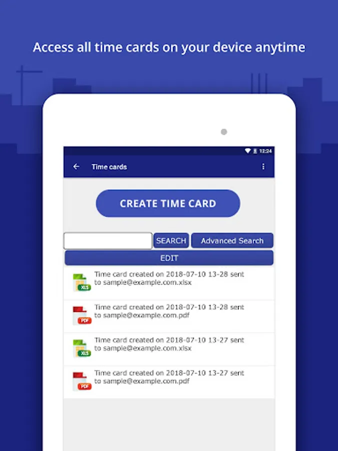 • Generate professional looking PDF and Excel time card reports