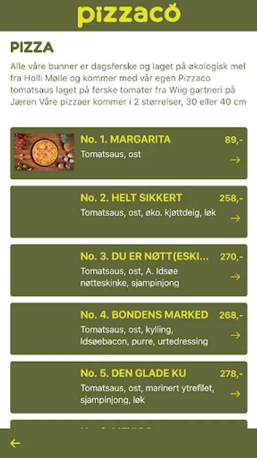 Pizza with a little better conscience. Real and honest raw materials, because you deserve it. Organic freshly made bottom every day, tomato sauce with tomatoes from Jæren, good and proper topping ingredients. The app gives you cash points that you can use as part or full payment as you earn points. The app geotags you, so it knows where you are when you want pizza as fast as possible!