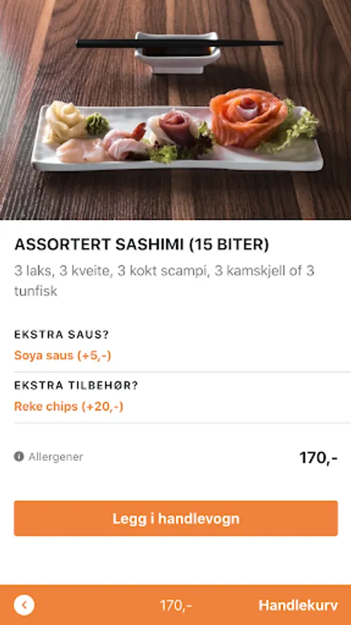 Raabiten Sushi has its own app for ordering food. Great pictures of the dishes for take away / delivery make it easy to choose your favorites and make choices. All dishes are well labeled with allergens. In addition to take away and delivery, we have a great restaurant. The app is compatible with VIPPS, so one must not enter bank card details. All purchases are stored in your app, and receipts can be sent to your email.