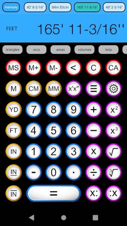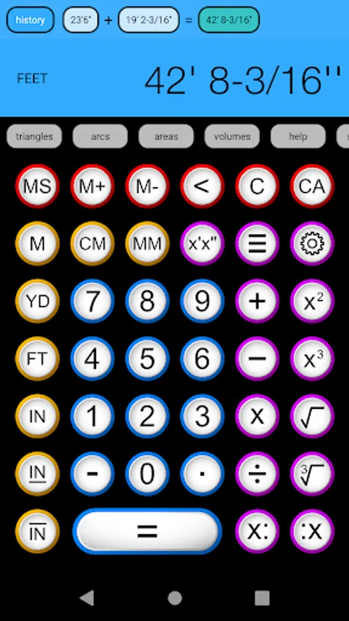 - add, subtract, multiply, divide, power, root, and more with measurements in feet, inches, and fractional inches