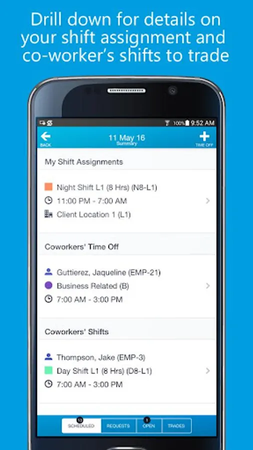 Companies cut scheduling time by making employees more pro-active in the scheduling process and employees are kept up-to-date with instant notifications of scheduling changes.