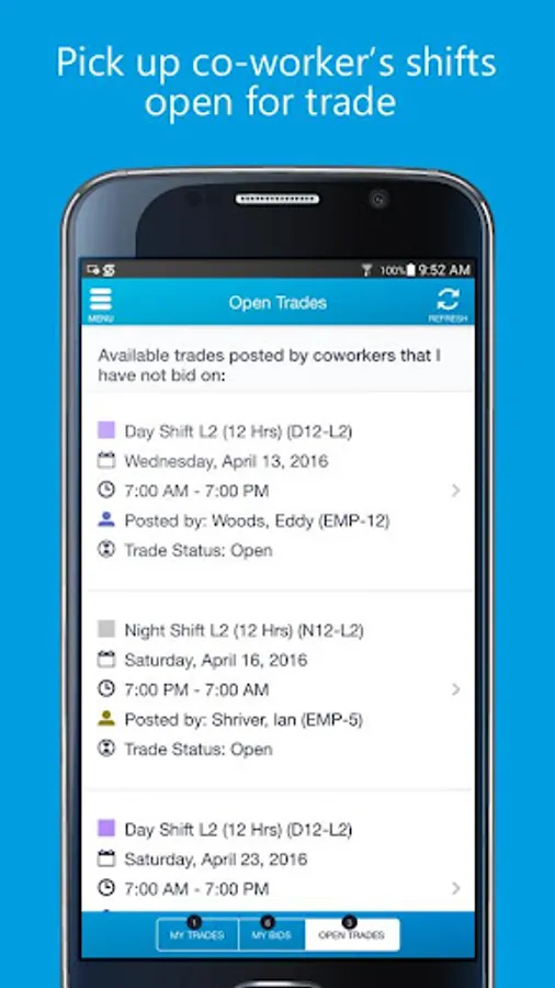 Employees of companies using Snap Schedule 365 cloud-based scheduling can use this app to access their work schedules 24/7 from anywhere and perform a host self-service functions including: