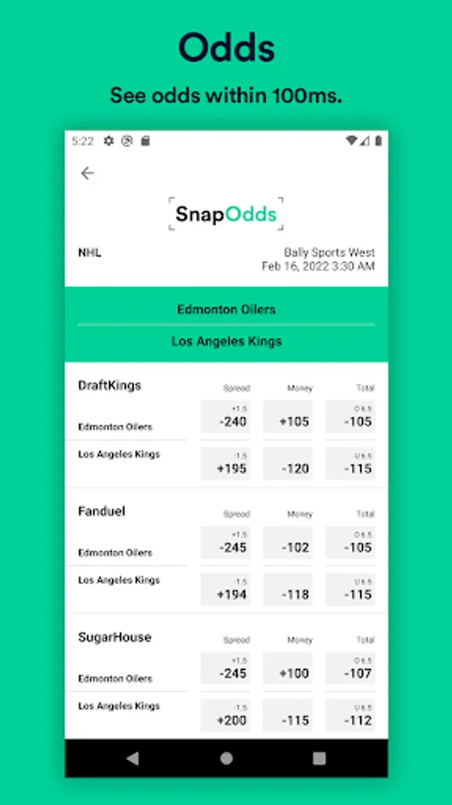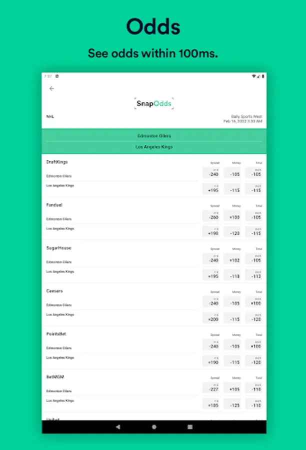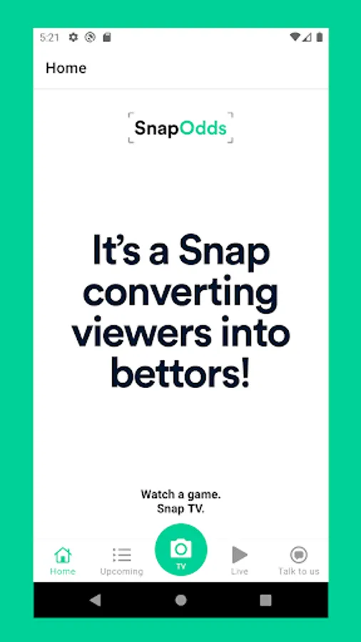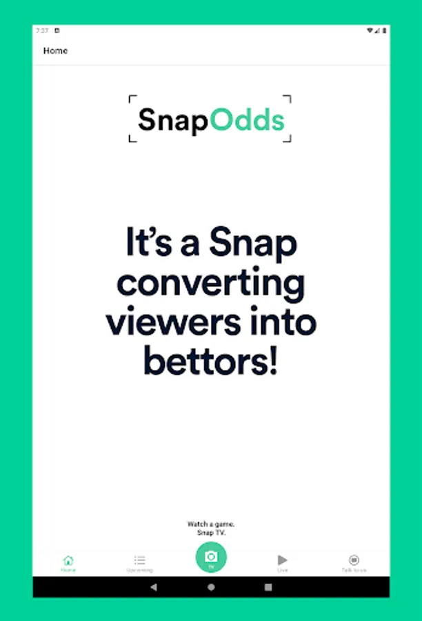 SnapOdds, is a video recognition technology that lets fans instantly get the best in-play customized content (Odds, Picks, Ads, Betprompts, Promotions) on live sports games.