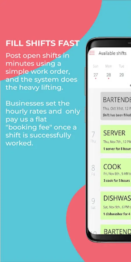 Approved professionals are thoroughly background-checked, pre-qualified, industry-experienced TEAM PLAYERS that are ready to work for you in a pinch. They are compensated with 100% of the hourly rate plus any tips earned, and our system pays them near instantly— plus they have immediate access to benefits like health insurance, retirement, banking, and more! All workers & businesses are held to our Community Guidelines to ensure accountability.