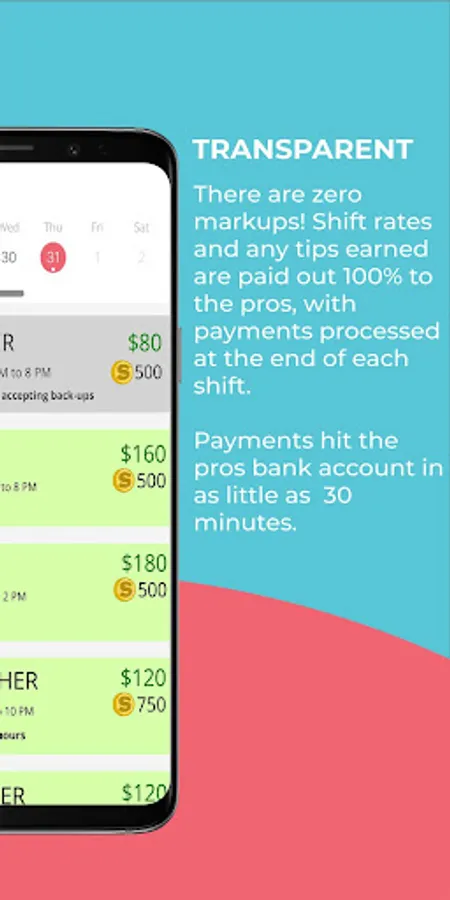 You earn more, quicker— Shift rates and any tips earned are 100% yours to keep (there are no percentages or "cuts" taken by SNAPSHYFT). All shift payouts are processed at the conclusion of successfully worked shifts, and can hit your bank account in as little as 30 minutes! The average payout tends to be 50% MORE per hour than the national hourly rate for the industry.