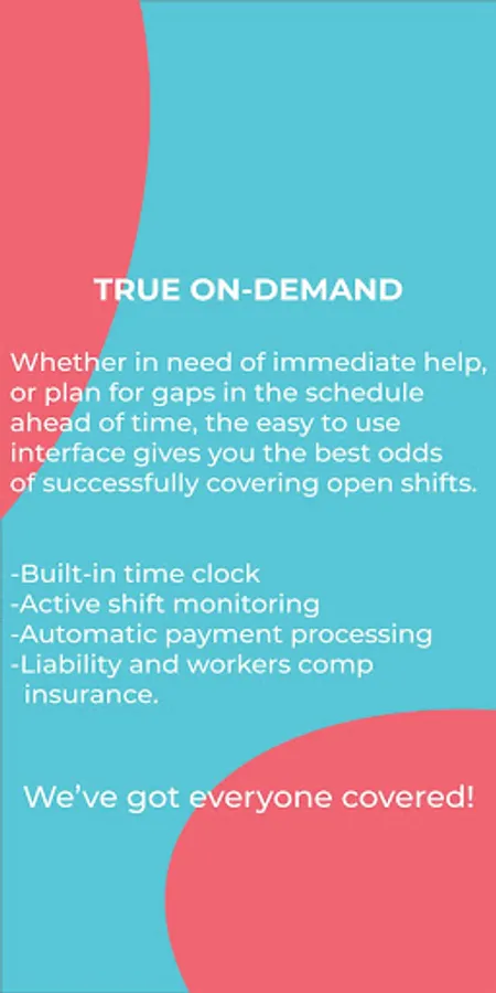 Whether in need of immediate help, or plan for gaps in the schedule ahead of time, the easy to use interface gives you the best odds of successfully covering your open shifts with vetted high-caliber professionals. With built-in time clock, active shift monitoring, automatic payment processing, liability and workers’ comp insurance, we’ve got you covered with the industry's most reliable staffing solution.