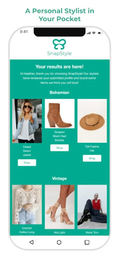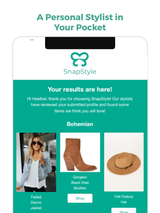 Now you can build entire outfits around your favorite items, professionally styled by one of our SnapStyle stylists. Simply take a photo and then receive suggestions for items that match your favorite pieces and style preferences.