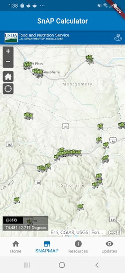 The Map section contains the USDA FNS Retail Locator, which locates retailers that accept SNAP around your location.