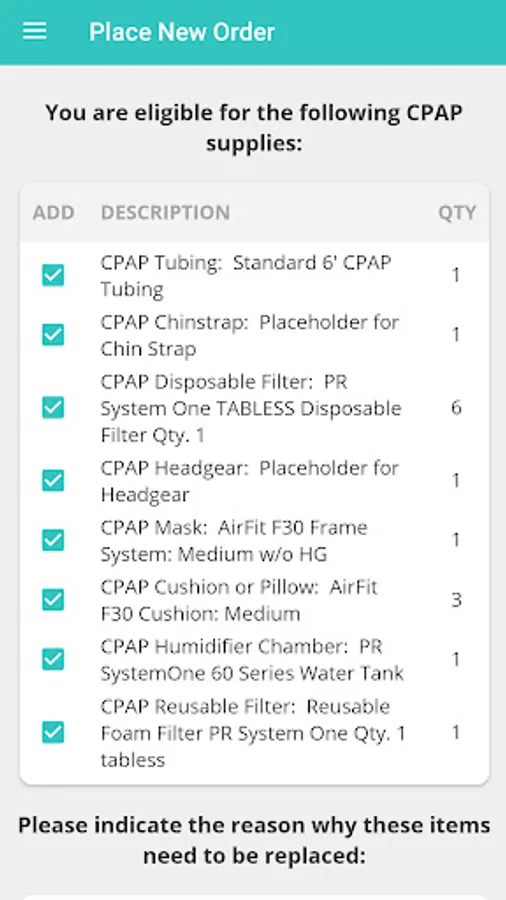 This application allows patients to re-order CPAP-related supplies, update their insurance and demographic information
