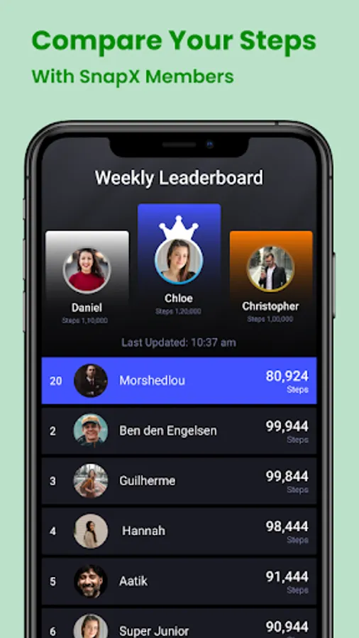 A Leaderboard is introducing SnapX user rank. These ranks depends on your steps.