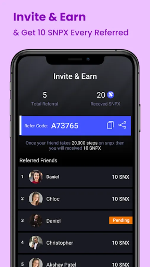When your friend takes 20,000 steps on SnapX then you will receive 10 SNPX.