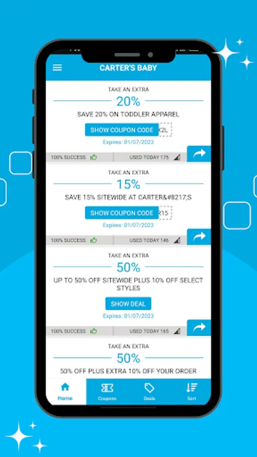 Welcome to Carters Baby Promo Code & Coupons, the ultimate app for parents and caregivers seeking incredible savings on high-quality baby clothing, accessories, and more. Created by SnatchCoupons.com, a leading platform for online deals and discounts, our app is your gateway to exclusive Carters Baby promo codes, coupons, and unbeatable offers.