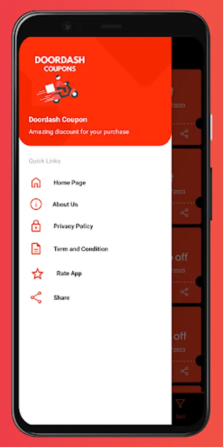 With these sorting options, users of DoorDash Promo Code can easily find the best deals available, and ensure that they are making the most of their savings opportunities. The app makes it simple and convenient to browse for Coupons, filter by restaurant and cuisine type, and sort by discount percentage and expiry date. Download DoorDash Promo Code today to start enjoying exclusive offers and savings on your food delivery and takeout orders.