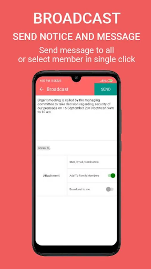 Meeting Management: Schedule meeting and invite all members or particular group. Get notification before meeting and send minute of meeting to the members. Upload notices in society notebook notice board that can view and download by community members.