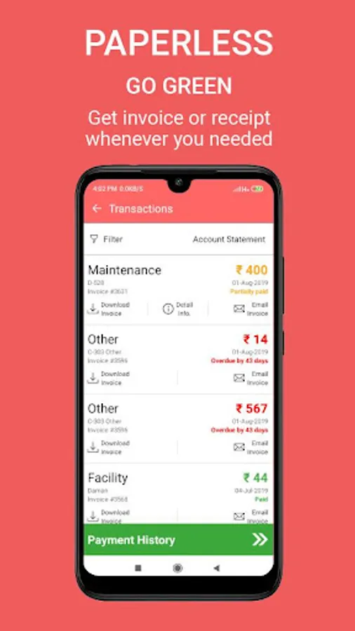 Digital Invoice & Receipt: GO PAPERLESS and generate maintenance invoice and payment receipt of any dates at anytime and anywhere for personal accounting.