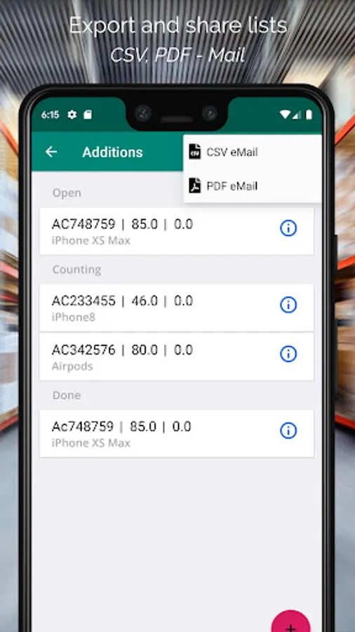 1. Send a list of items to be counted by mail to the device with inventory app installed.