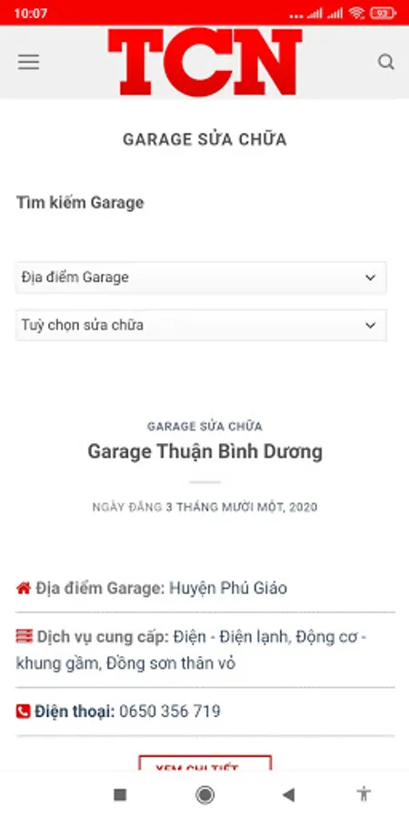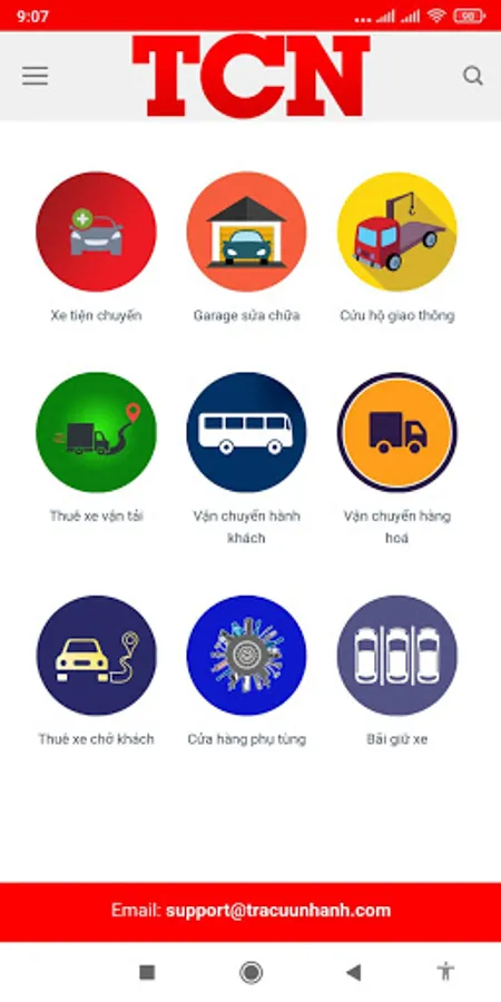 TCN application is an application that helps users quickly look up utilities on the road such as traffic rescue, car repair garage, cargo truck, passenger garage, parts store, parking lot, ... Users can easily search and contact services around their location easily and simply.