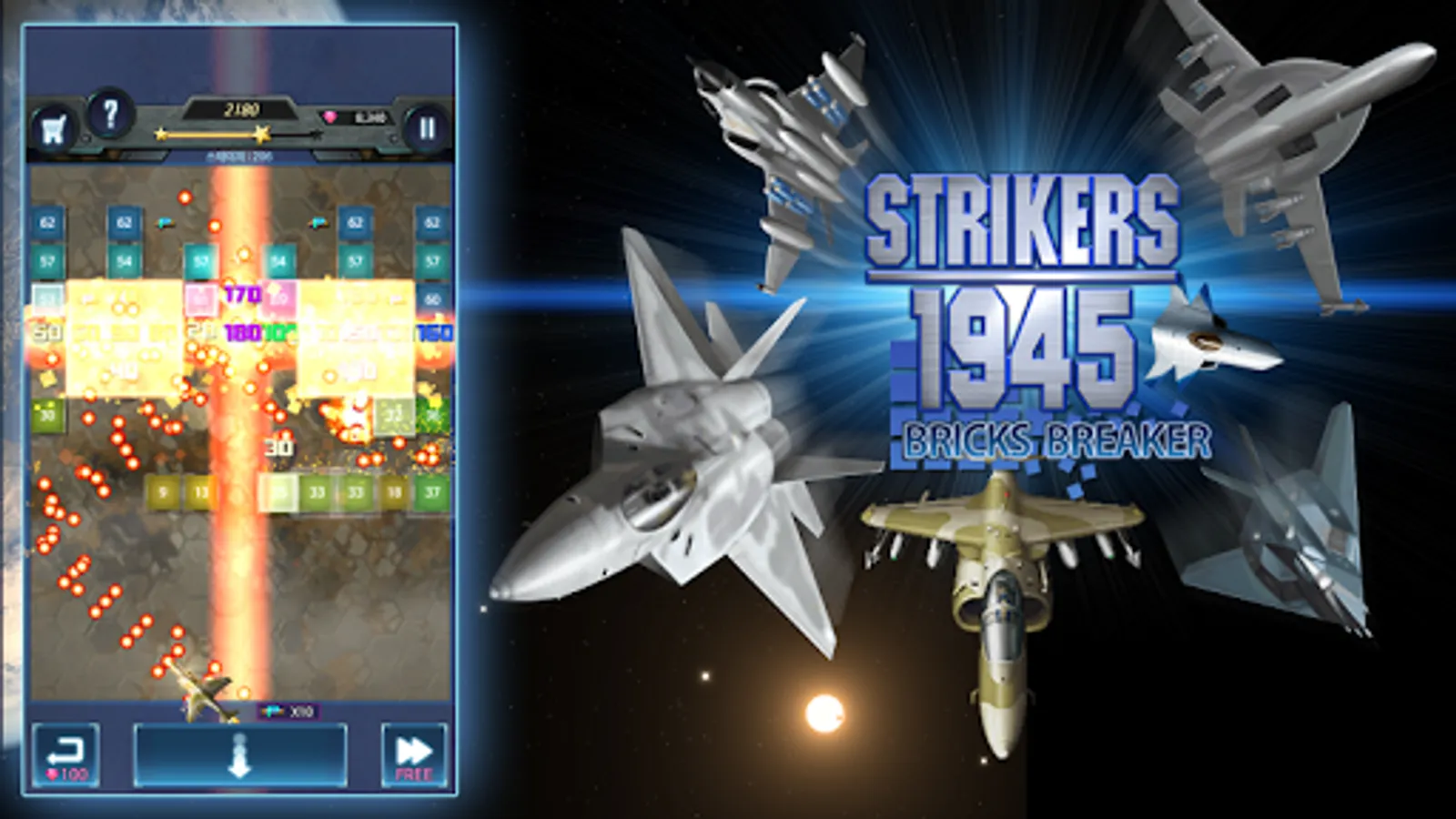 Classic Arcade cabinet game 【Strikers 1945】 is reborn as bricks breaking game.