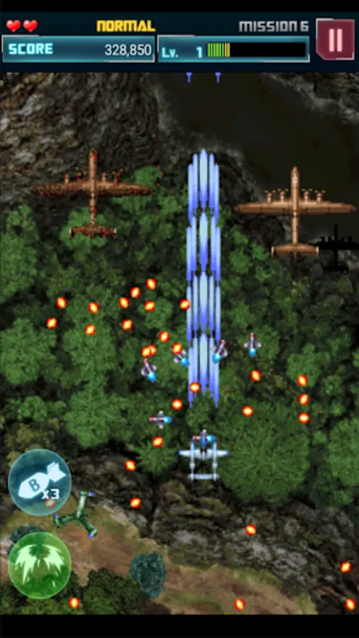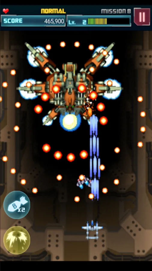 Touch the "bomb" button: blocks the enemy’s bullets for a certain amount of time by calling for backup.