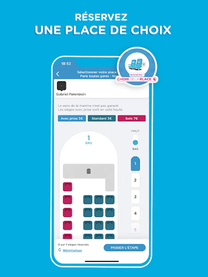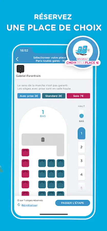 • Choose your standard (+3€), plug (+3€) or solo (+7€) seat with the CHOICE OF SEAT option