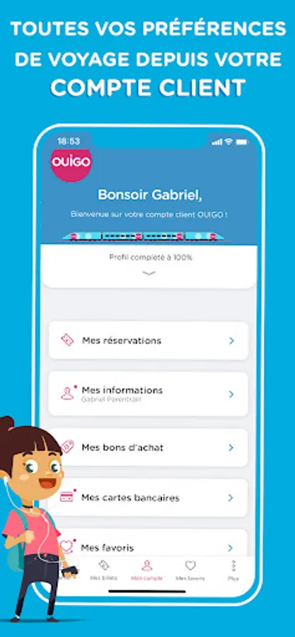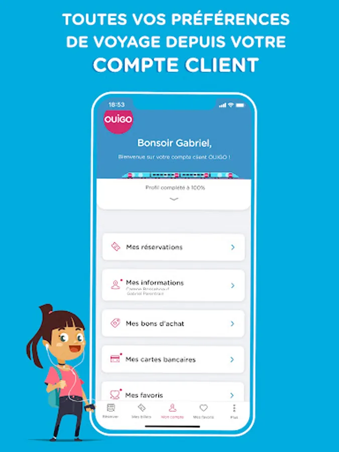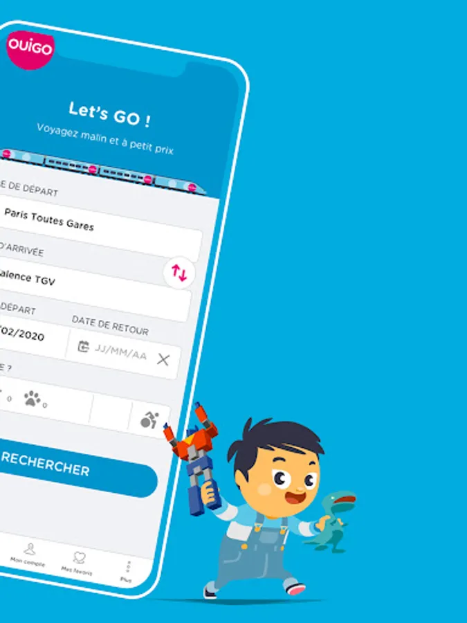• Simplified booking thanks to the OUIGO customer account and its many features (favorite routes, travel companions, simplified payment, vouchers, etc.)