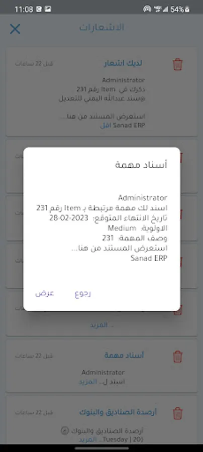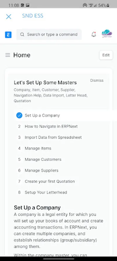 Receive notification, show dashboard about all modules (accounts, stock, buying, selling, human resource, leaves, payroll, loans, quality, administrative communication, balance score-card).